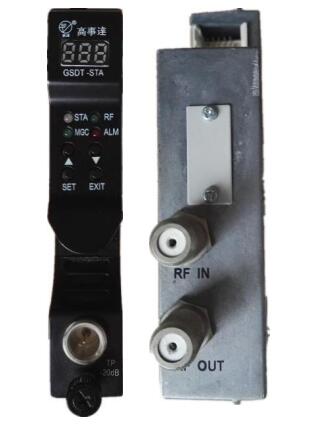 GSDT-AMP為頭端或分前端正向射頻放大模塊,運(yùn)用射頻放大電路可提供高線性、低噪聲和低失真的特性。通過前面板控制,可以調(diào)節(jié)輸出射頻信號,從而得到信號的輸出電平值。由于纜線的信號損耗,造成高低頻信號不平,可以通過前面板控制輸出斜率,調(diào)平信號。
